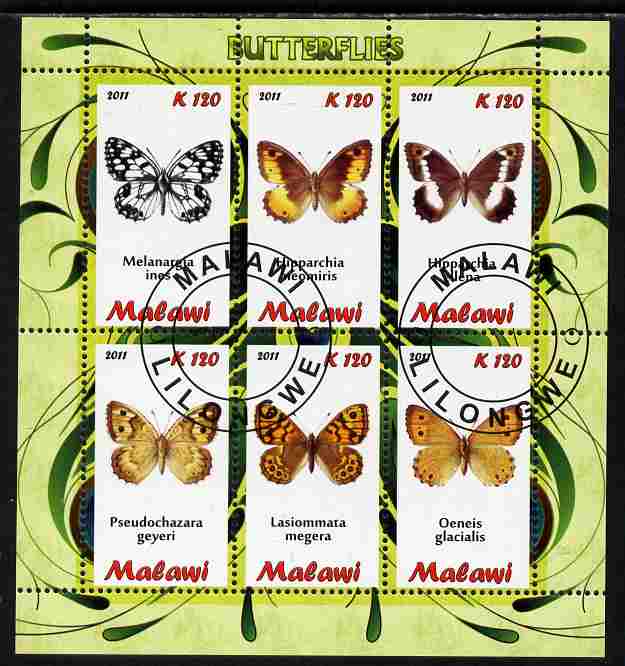 Malawi 2011 Butterflies #2 perf sheetlet containing 6 values cto used