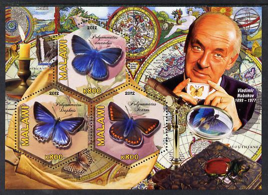 Malawi 2012 Butterflies & Entomologists - Vladimir Nabokov perf sheetlet containing 3 hexagonal shaped values unmounted mint