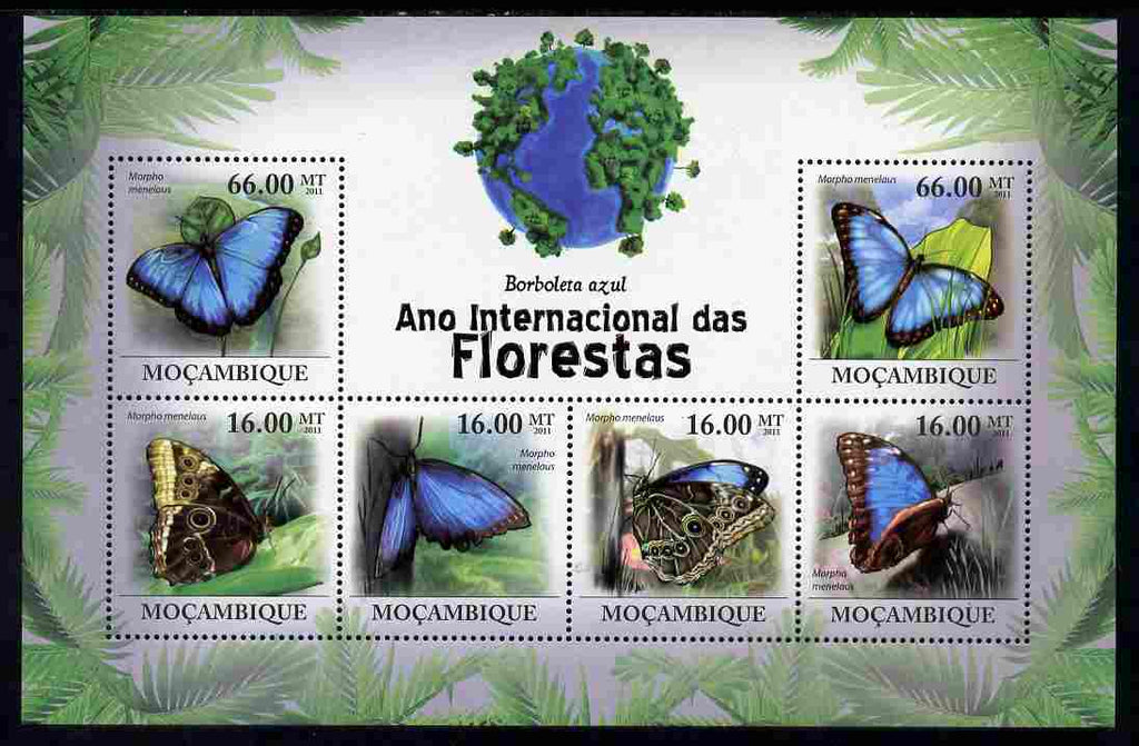 Mozambique 2011 International Year of the Forest - Butterflies perf sheetlet containing 6 values unmounted mint, Michel 4264-69