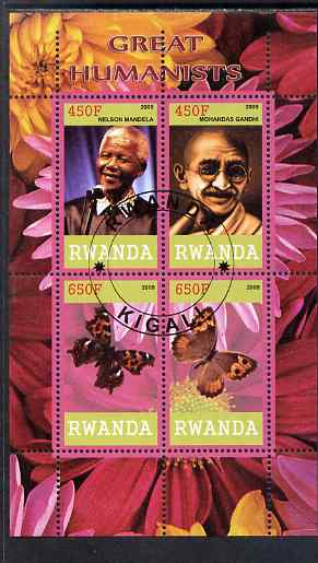 Rwanda 2009 Great Humanist #1 - Mandela & Gandhi plus Butterflies perf sheetlet containing 4 values cto used