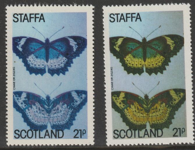 Staffa 1979 Butterflies - 21p Cyane or Zigzag superb shade plus normal, both unmounted mint