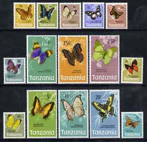 Tanzania 1973 Butterflies definitive set of 15 values complete unmounted mint, SG 158-72