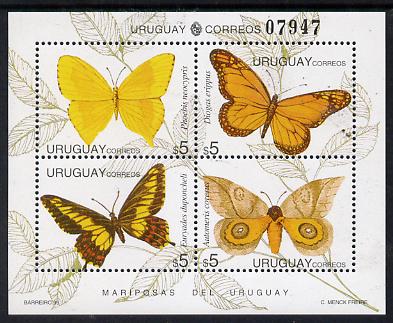 Uruguay 1995 Butterflies sheetlet containing set of 4 x $5 values unmounted mint