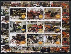Afghanistan 2000 Early Cars #3 (Benz & Wolseley) perf sheetlet containing set of 9 values unmounted mint