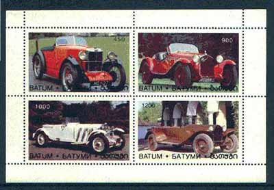 Batum 1996 Classic Sports Cars perf sheetlet containing 4 values unmounted mint