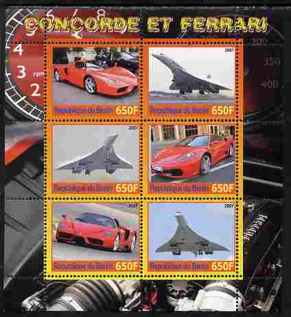Benin 2007 Concorde & Ferrari #2 perf sheetlet containing 6 values unmounted mint. Note this item is privately produced and is offered purely on its thematic appeal