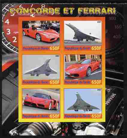 Benin 2007 Concorde & Ferrari #3 imperf sheetlet containing 6 values unmounted mint. Note this item is privately produced and is offered purely on its thematic appeal