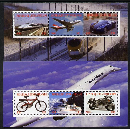 Central African Republic 2012 Transportation perf sheetlet containing 6 values unmounted mint. Note this item is privately produced and is offered purely on its thematic appeal