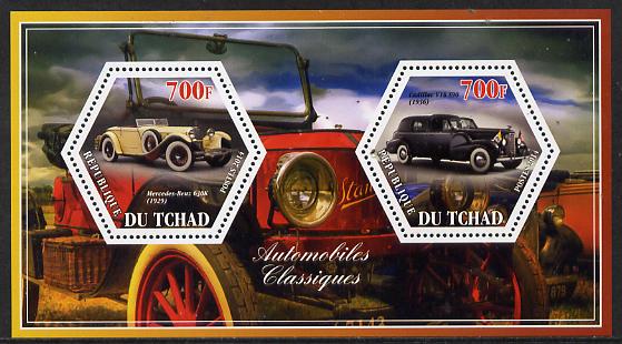Chad 2014 Classic Cars #1 perf sheetlet containing two hexagonal-shaped values unmounted mint