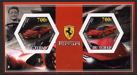 Chad 2014 Ferrari Cars #1 imperf sheetlet containing two hexagonal-shaped values unmounted mint