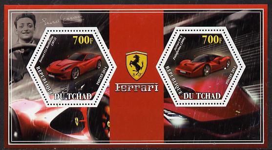 Chad 2014 Ferrari Cars #2 perf sheetlet containing two hexagonal-shaped values unmounted mint