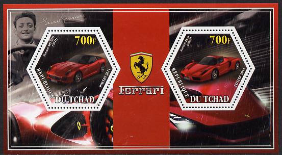 Chad 2014 Ferrari Cars #3 perf sheetlet containing two hexagonal-shaped values unmounted mint