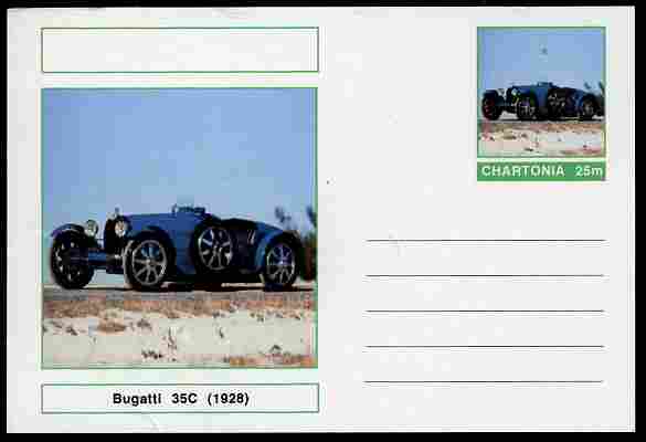 Chartonia (Fantasy) Cars - 1928 Bugatti 35C postal stationery card unused and fine