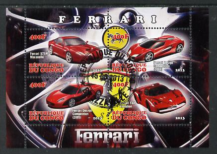 Congo 2013 Ferrari Cars #1 perf sheetlet containing four values fine cto used