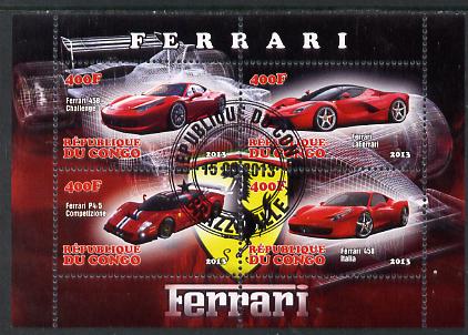 Congo 2013 Ferrari Cars #2 perf sheetlet containing four values fine cto used
