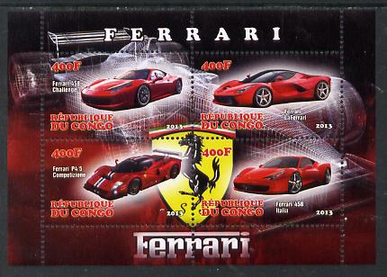 Congo 2013 Ferrari Cars #2 perf sheetlet containing four values unmounted mint