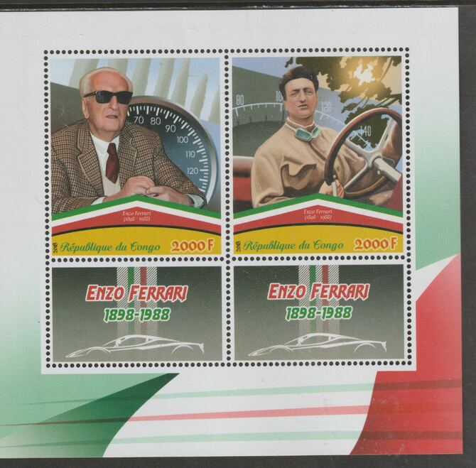 Congo 2018 Enzo Ferrari perf sheet containing two values plus two labels unmounted mint