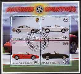 Djibouti 2006 Sports Cars perf sheetlet containing 4 values (Porsche, TVR, Ferrari & Mazda) very fine cto used