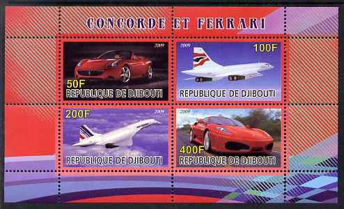 Djibouti 2009 Concorde and Ferrari #2 perf sheetlet containing 4 values unmounted mint