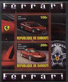 Djibouti 2009 Ferrari Cars #2 perf sheetlet containing 2 values (F430 & 575M) unmounted mint