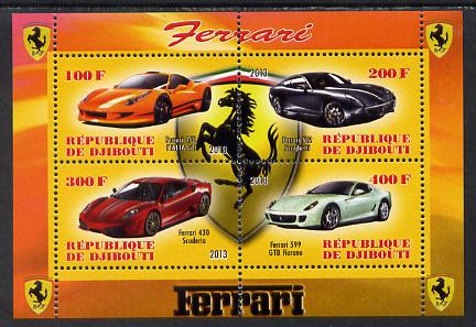Djibouti 2013 Ferrari Cars #1 perf sheetlet containing 4 values unmounted mint
