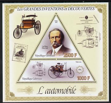 Gabon 2014 Great Inventions & Discoveries - Cars perf sheetlet containing two values (triangular & trapezoidal shaped) unmounted mint