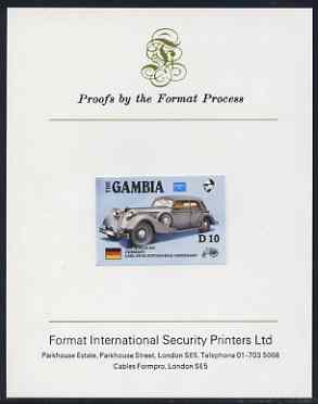 Gambia 1987 Ameripex 10d (1936 Horch 853) imperf proof mounted on Format International proof card, as SG 657