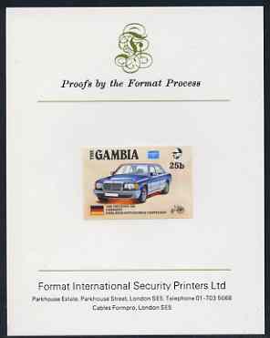 Gambia 1987 Ameripex 25b (Mercedes 500) imperf proof mounted on Format International proof card as SG 650