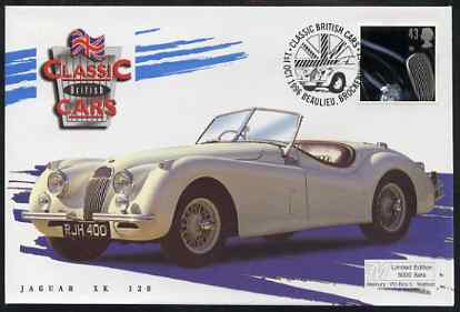 Great Britain 1996 Classic Sports Cars 43p Jaguar XK120 on Mercury illustrated (Limited Edition) cover with special Beaulieu cancel, SG 1948