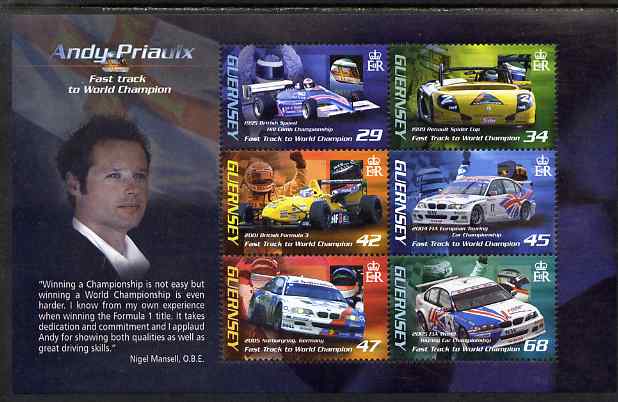 Guernsey 2006 Andy Priaulx's Motor Racing Victories perf m/sheet unmounted mint, SG MS1109