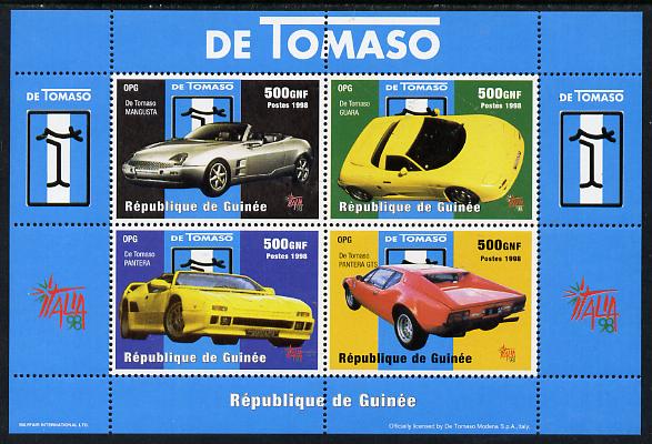 Guinea - Conakry 1998 De Tomaso Cars perf sheetlet containing 4 values unmounted mint. Note this item is privately produced and is offered purely on its thematic appeal