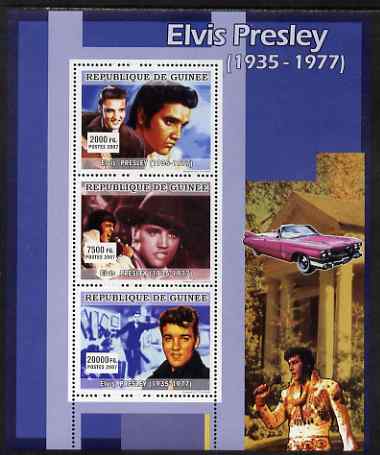 Guinea - Conakry 2007 Elvis Presley perf sheetlet containing 3 values unmounted mint