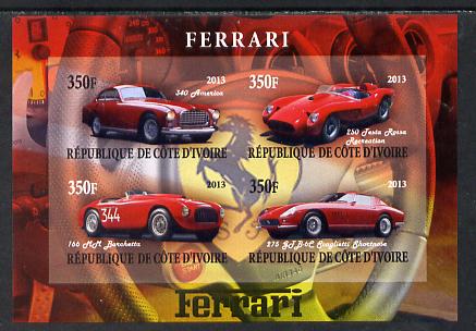 Ivory Coast 2013 Ferrari Cars #1 imperf sheetlet containing 4 values unmounted mint