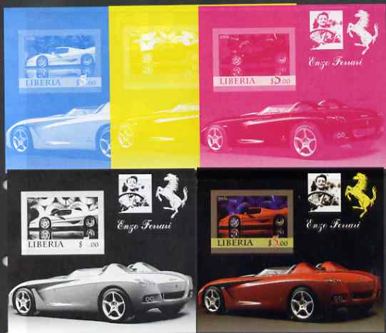 Liberia 2006 Enzo Ferrari #2 m/sheet, the set of 5 imperf progressive proofs comprising the 4 individual colours plus all 4-colour composite, unmounted mint