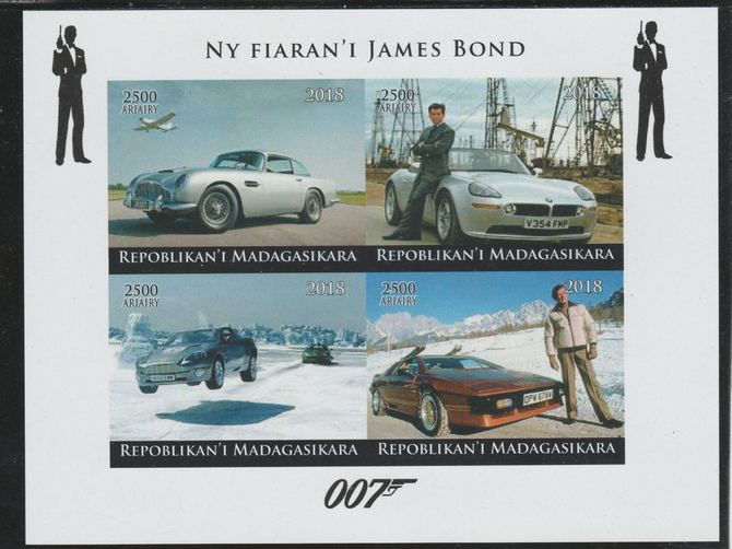 Madagascar 2018 James Bond's Cars imperf sheetlet containing 4 values unmounted mint. Note this item is privately produced and is offered purely on its thematic appeal.