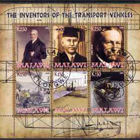 Malawi 2008 Transport Inventors #1 perf sheetlet containing 6 values fine cto used