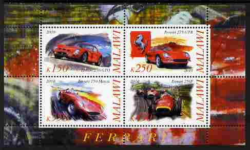 Malawi 2010 Cars #01 - Ferrari perf sheetlet containing 4 values unmounted mint