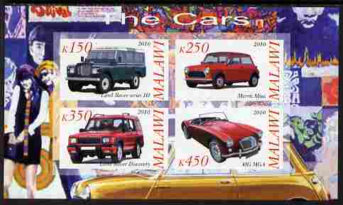 Malawi 2010 Cars #03 - Land Rover, Morris Mini & MG imperf sheetlet containing 4 values unmounted mint