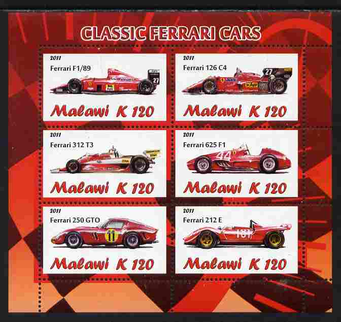 Malawi 2011 Classic Ferrari perf sheetlet containing 6 values unmounted mint