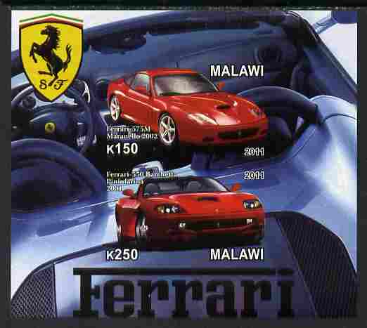 Malawi 2011 Ferrari #1 imperf sheetlet containing 2 values unmounted mint