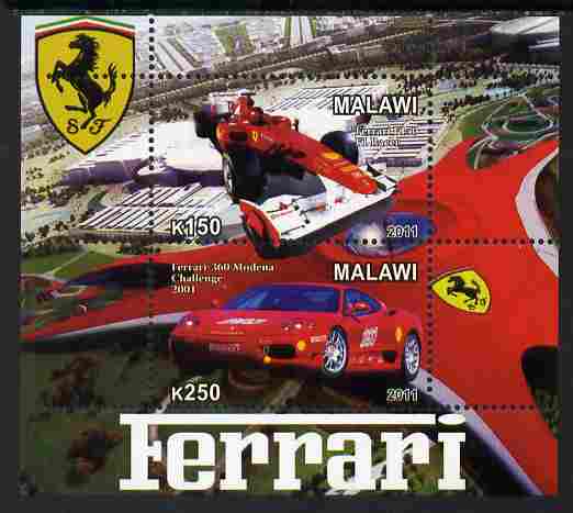 Malawi 2011 Ferrari #2 perf sheetlet containing 2 values unmounted mint