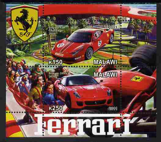 Malawi 2011 Ferrari #3 perf sheetlet containing 2 values unmounted mint