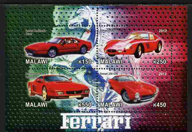 Malawi 2012 Ferrari Cars #02 perf sheetlet containing 4 values unmounted mint