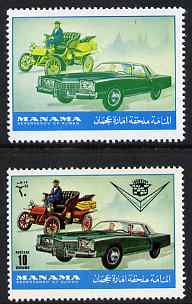 Manama 1972 Cars (Past & Present) 10d with red and black omitted plus issued stamp both unmounted mint