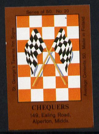 Match Box Labels - Chequers (No.20 from a series of 50 Pub signs) dark brown background, very fine unused condition (St George's Taverns)