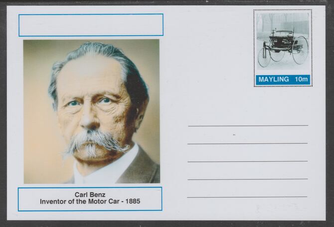 Mayling (Fantasy) Great Minds - Carl Benz - glossy postal stationery card unused and fine
