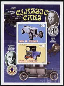 Myanmar 2001 Classic Cars (Blitzen-Benz & Berliet) imperf sheetlet containing 2 values unmounted mint