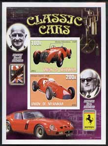 Myanmar 2001 Classic Cars (Healey & Ferrari) imperf sheetlet containing 2 values unmounted mint
