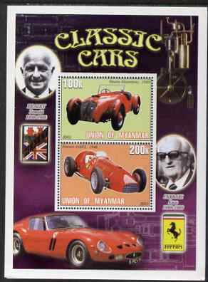 Myanmar 2001 Classic Cars (Healey & Ferrari) perf sheetlet containing 2 values unmounted mint