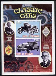 Myanmar 2001 Classic Cars (Oldsmobil & Renault) imperf sheetlet containing 2 values unmounted mint